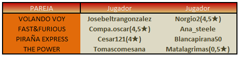 MUY IMPORTANTE: En esta Fase Final se tomara como 1er criterio de desempate la pareja que haya colocado MAS PALABRAS BONUS. Si persiste el empate, se atenderá a la pareja que mas puntos conjuntos hayan hecho como visitantes.