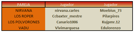 Al conjunto de las dos partidas lo denominamos PARTIDO. El capitán de cada pareja tiene que publicar antes de la fecha fin de plazo, de la siguiente manera:
