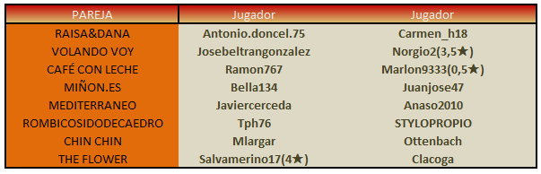 Al conjunto de las dos partidas lo denominamos PARTIDO. El capitán de cada pareja tiene que publicar antes de la fecha fin de plazo, de la siguiente manera: