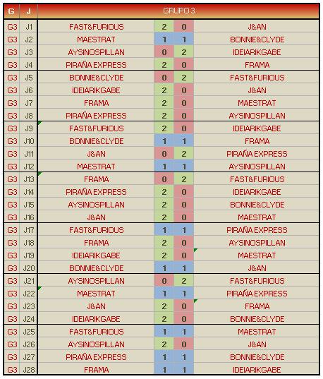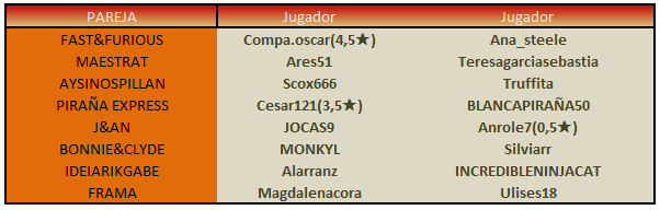 Al conjunto de las dos partidas lo denominamos PARTIDO. El capitán de cada pareja tiene que publicar antes de la fecha fin de plazo, de la siguiente manera: