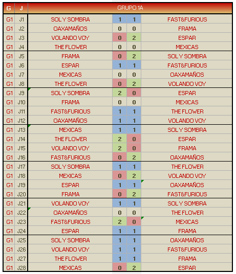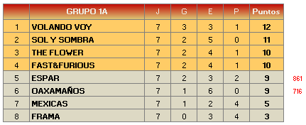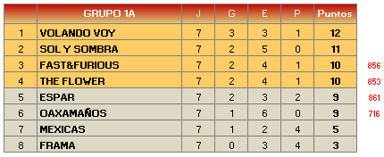 Pasarán a CUARTOS las cuatro primeras clasificadas.