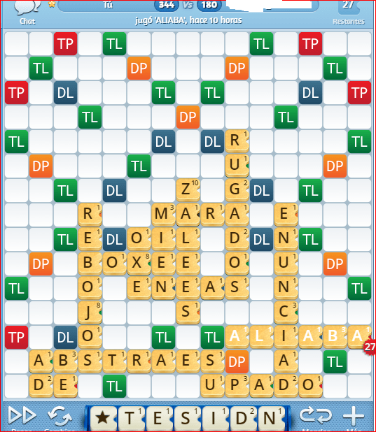 Seguimos en racha con buenas letras que nos permiten hacer pleno en bastantes lugares pero como hay que elegir una me quedo con DESTINO por 60 puntos en la tercera columna de la derecha formando tambien ET – NI – UN – NO