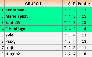 4En está página se irán publicando los resultados de las diferentes partidas, siendo ambos jugadores responsables de subirlos o de comprobar que ya hayan sido publicados insertando un COMENTARIO en la parte inferior de la pantalla (opción “Deja tu comentario”), indicando el nombre de los dos jugadores y los puntos obtenidos en la partida.