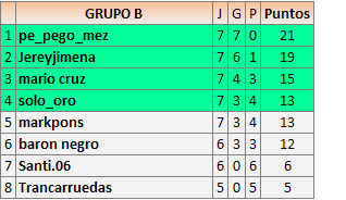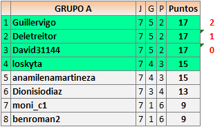 Deja un comentarioEn está página se irán publicando los resultados de las diferentes partidas, siendo ambos jugadores responsables de subirlos o de comprobar que ya hayan sido publicados insertando un COMENTARIO en la parte inferior de la pantalla (opción “Deja tu comentario”), indicando el nombre de los dos jugadores y los puntos obtenidos en la partida.