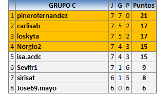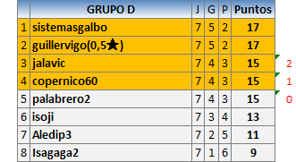 Deja un comentarioEn está página se irán publicando los resultados de las diferentes partidas, siendo ambos jugadores responsables de subirlos o de comprobar que ya hayan sido publicados insertando un COMENTARIO en la parte inferior de la pantalla (opción “Deja tu comentario”), indicando el nombre de los dos jugadores y los puntos obtenidos en la partida.
