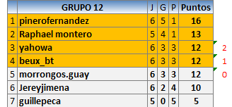 Deja un comentarioEn está página se irán publicando los resultados de las diferentes partidas, siendo ambos jugadores responsables de subirlos o de comprobar que ya hayan sido publicados insertando un COMENTARIO en la parte inferior de la pantalla (opción “Deja tu comentario”), indicando el nombre de los dos jugadores y los puntos obtenidos en la partida.
