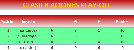 Gracias, fue un buen playoff muy cordial. Mercedes debió ganarme la primera salvándome solo la suerte y Adriana ha jugado muy bien. Por un descuido Guillermo no se lo llevó pero esto es asi, errar es muy muy saludable para el juego. Agradecer a la organización este paso para seguir disfrutando de las letras, ganar es lo de menos 👏
