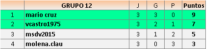 Deja un comentarioEn está página se irán publicando los resultados de las diferentes partidas, siendo ambos jugadores responsables de subirlos o de comprobar que ya hayan sido publicados insertando un COMENTARIO en la parte inferior de la pantalla (opción “Deja tu comentario”), indicando el nombre de los dos jugadores y los puntos obtenidos en la partida.