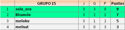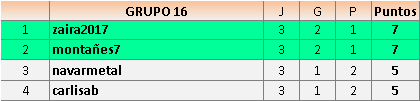 Deja un comentarioEn está página se irán publicando los resultados de las diferentes partidas, siendo ambos jugadores responsables de subirlos o de comprobar que ya hayan sido publicados insertando un COMENTARIO en la parte inferior de la pantalla (opción “Deja tu comentario”), indicando el nombre de los dos jugadores y los puntos obtenidos en la partida.