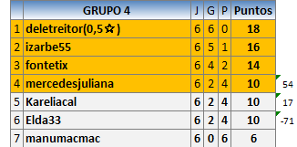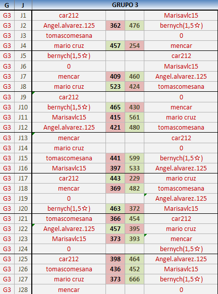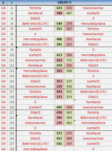 Deja un comentarioEn está página se irán publicando los resultados de las diferentes partidas, siendo ambos jugadores responsables de subirlos o de comprobar que ya hayan sido publicados insertando un COMENTARIO en la parte inferior de la pantalla (opción “Deja tu comentario”), indicando el nombre de los dos jugadores y los puntos obtenidos en la partida.