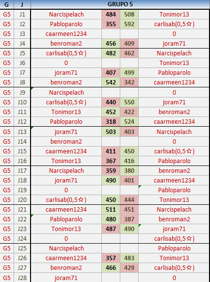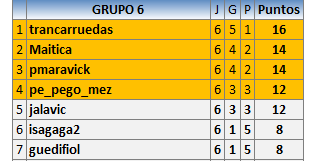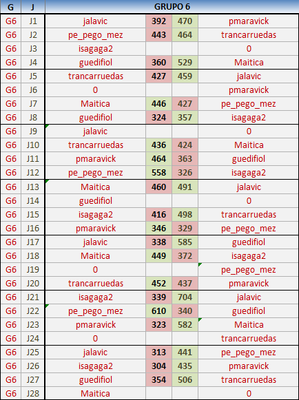 En está página se irán publicando los resultados de las diferentes partidas, siendo ambos jugadores responsables de subirlos o de comprobar que ya hayan sido publicados insertando un COMENTARIO en la parte inferior de la pantalla (opción “Deja tu comentario”), indicando el nombre de los dos jugadores y los puntos obtenidos en la partida.