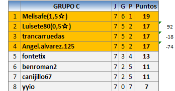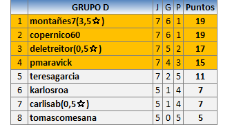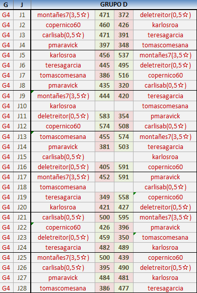 1En está página se irán publicando los resultados de las diferentes partidas, siendo ambos jugadores responsables de subirlos o de comprobar que ya hayan sido publicados insertando un COMENTARIO en la parte inferior de la pantalla (opción “Deja tu comentario”), indicando el nombre de los dos jugadores y los puntos obtenidos en la partida.