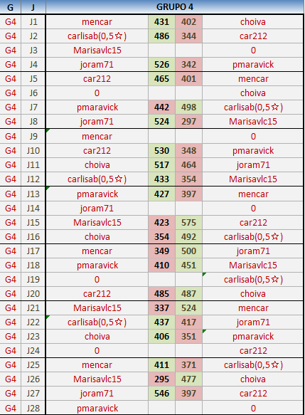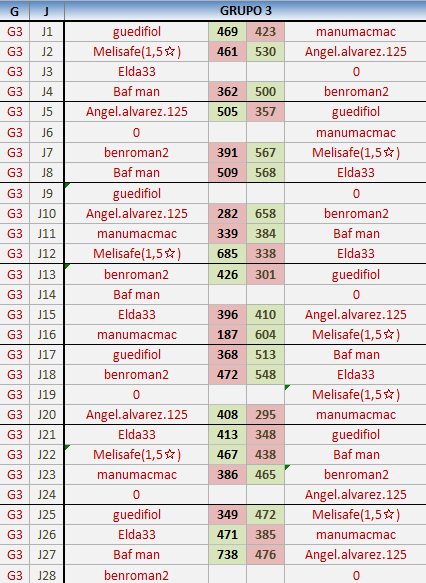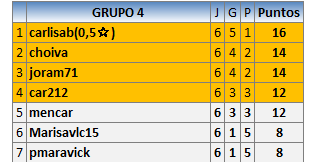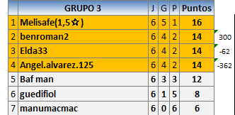 Deja un comentarioEn está página se irán publicando los resultados de las diferentes partidas, siendo ambos jugadores responsables de subirlos o de comprobar que ya hayan sido publicados insertando un COMENTARIO en la parte inferior de la pantalla (opción “Deja tu comentario”), indicando el nombre de los dos jugadores y los puntos obtenidos en la partida.