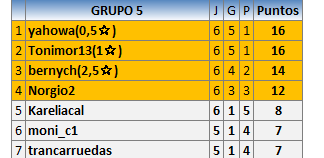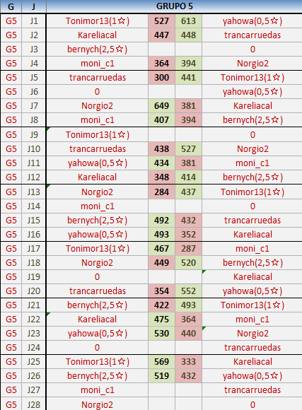 Deja un comentarioEn está página se irán publicando los resultados de las diferentes partidas, siendo ambos jugadores responsables de subirlos o de comprobar que ya hayan sido publicados insertando un COMENTARIO en la parte inferior de la pantalla (opción “Deja tu comentario”), indicando el nombre de los dos jugadores y los puntos obtenidos en la partida.
