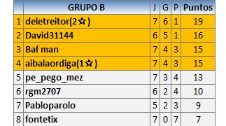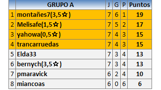 Deja un comentarioEn está página se irán publicando los resultados de las diferentes partidas, siendo ambos jugadores responsables de subirlos o de comprobar que ya hayan sido publicados insertando un COMENTARIO en la parte inferior de la pantalla (opción “Deja tu comentario”), indicando el nombre de los dos jugadores y los puntos obtenidos en la partida.