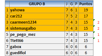 Gabox jugaba muy de vez en cuando y ayer rindió partida , me extrañó porque estaba convencida que terminaba la fase el 14 . No afecta para nada al cuadro porque las he perdido todas pero he preferido explicar la situación. Gracias .