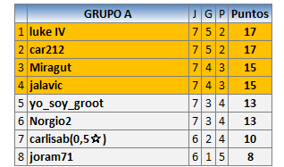 Deja un comentarioEn está página se irán publicando los resultados de las diferentes partidas, siendo ambos jugadores responsables de subirlos o de comprobar que ya hayan sido publicados insertando un COMENTARIO en la parte inferior de la pantalla (opción “Deja tu comentario”), indicando el nombre de los dos jugadores y los puntos obtenidos en la partida.