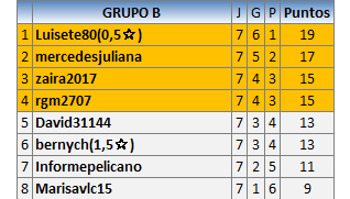 Deja un comentarioEn está página se irán publicando los resultados de las diferentes partidas, siendo ambos jugadores responsables de subirlos o de comprobar que ya hayan sido publicados insertando un COMENTARIO en la parte inferior de la pantalla (opción “Deja tu comentario”), indicando el nombre de los dos jugadores y los puntos obtenidos en la partida.