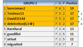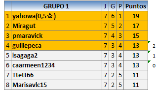 Deja un comentarioEn está página se irán publicando los resultados de las diferentes partidas, siendo ambos jugadores responsables de subirlos o de comprobar que ya hayan sido publicados insertando un COMENTARIO en la parte inferior de la pantalla (opción “Deja tu comentario”), indicando el nombre de los dos jugadores y los puntos obtenidos en la partida.