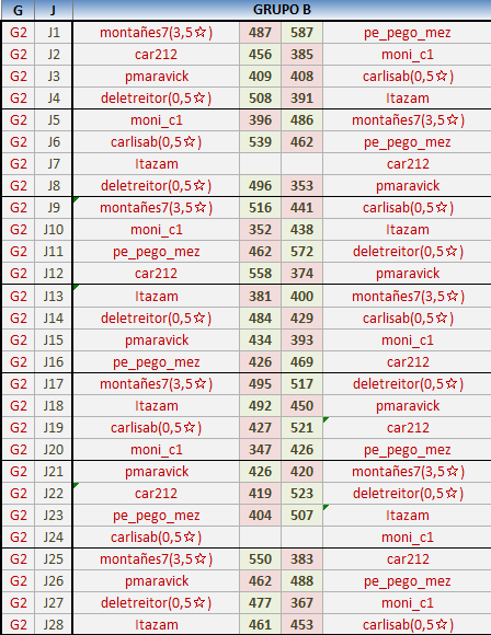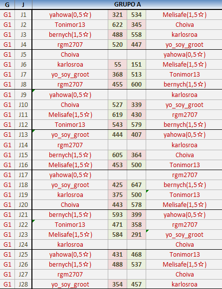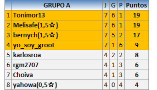 Deja un comentarioEn está página se irán publicando los resultados de las diferentes partidas, siendo ambos jugadores responsables de subirlos o de comprobar que ya hayan sido publicados insertando un COMENTARIO en la parte inferior de la pantalla (opción “Deja tu comentario”), indicando el nombre de los dos jugadores y los puntos obtenidos en la partida.