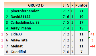 Deja un comentarioEn está página se irán publicando los resultados de las diferentes partidas, siendo ambos jugadores responsables de subirlos o de comprobar que ya hayan sido publicados insertando un COMENTARIO en la parte inferior de la pantalla (opción “Deja tu comentario”), indicando el nombre de los dos jugadores y los puntos obtenidos en la partida.