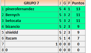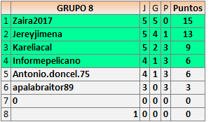 4En está página se irán publicando los resultados de las diferentes partidas, siendo ambos jugadores responsables de subirlos o de comprobar que ya hayan sido publicados insertando un COMENTARIO en la parte inferior de la pantalla (opción “Deja tu comentario”), indicando el nombre de los dos jugadores y los puntos obtenidos en la partida.