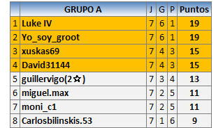 Deja un comentarioEn está página se irán publicando los resultados de las diferentes partidas, siendo ambos jugadores responsables de subirlos o de comprobar que ya hayan sido publicados insertando un COMENTARIO en la parte inferior de la pantalla (opción “Deja tu comentario”), indicando el nombre de los dos jugadores y los puntos obtenidos en la partida.