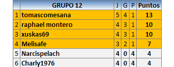 JORNADA 12: Xuscas69: (305) melisafe (475)