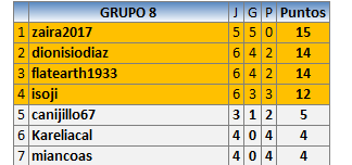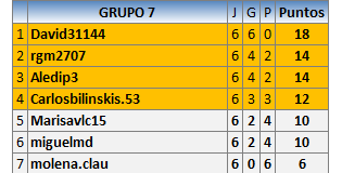 Deja un comentarioEn está página se irán publicando los resultados de las diferentes partidas, siendo ambos jugadores responsables de subirlos o de comprobar que ya hayan sido publicados insertando un COMENTARIO en la parte inferior de la pantalla (opción “Deja tu comentario”), indicando el nombre de los dos jugadores y los puntos obtenidos en la partida.