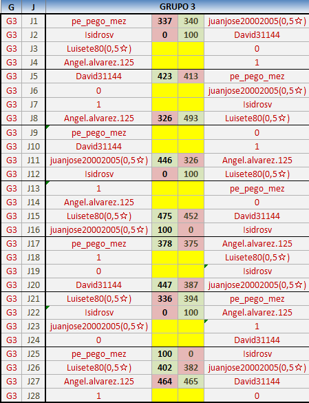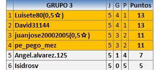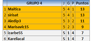 Deja un comentarioEn está página se irán publicando los resultados de las diferentes partidas, siendo ambos jugadores responsables de subirlos o de comprobar que ya hayan sido publicados insertando un COMENTARIO en la parte inferior de la pantalla (opción “Deja tu comentario”), indicando el nombre de los dos jugadores y los puntos obtenidos en la partida.