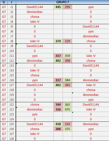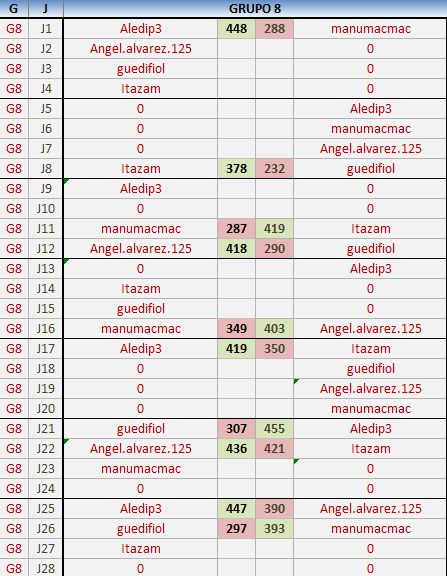 Deja un comentarioEn está página se irán publicando los resultados de las diferentes partidas, siendo ambos jugadores responsables de subirlos o de comprobar que ya hayan sido publicados insertando un COMENTARIO en la parte inferior de la pantalla (opción “Deja tu comentario”), indicando el nombre de los dos jugadores y los puntos obtenidos en la partida.